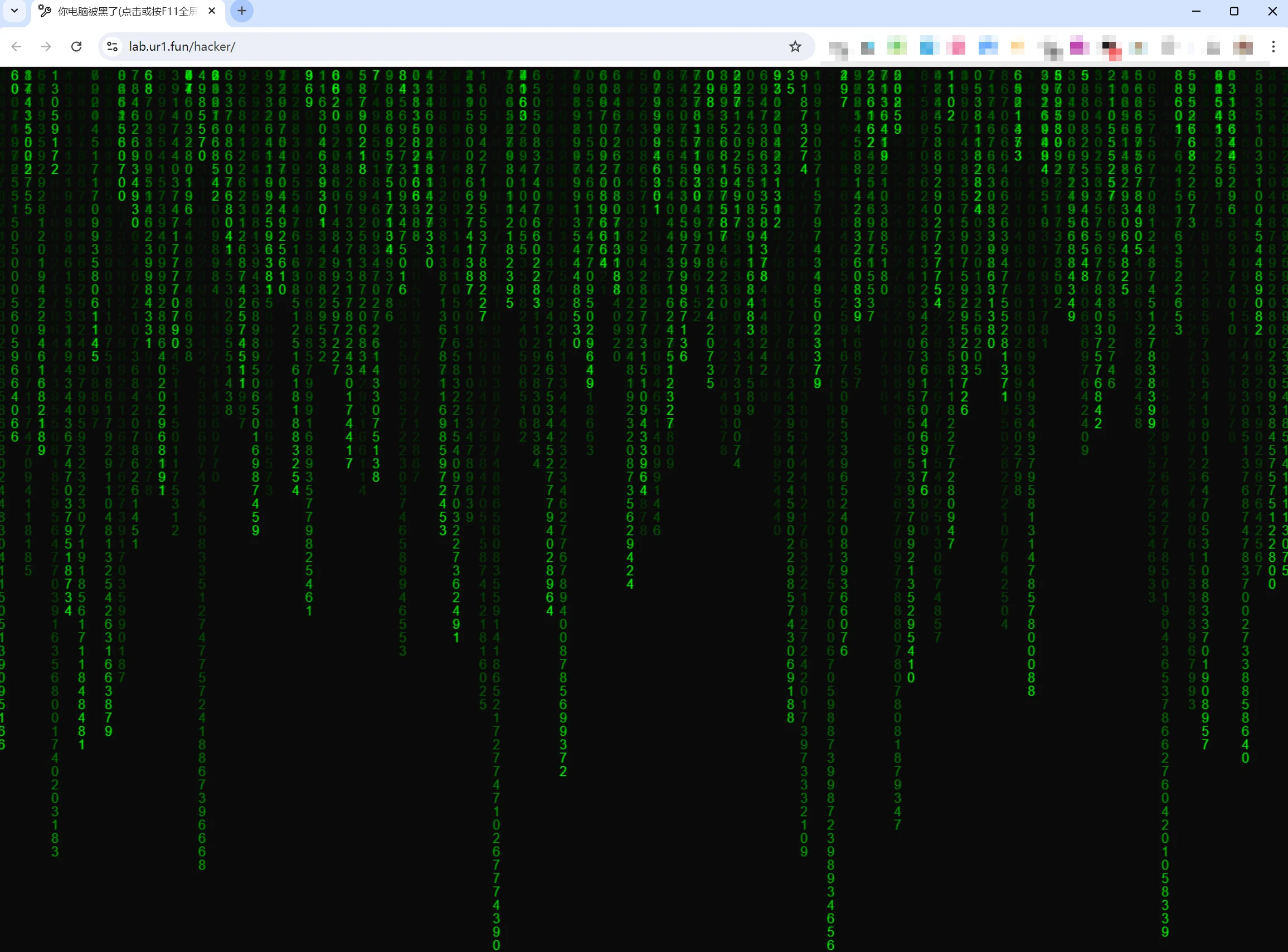 你的电脑被黑了,这是一个模拟电脑被黑客攻击后的网页特效,也可以当做电脑屏保,挺炫酷的。